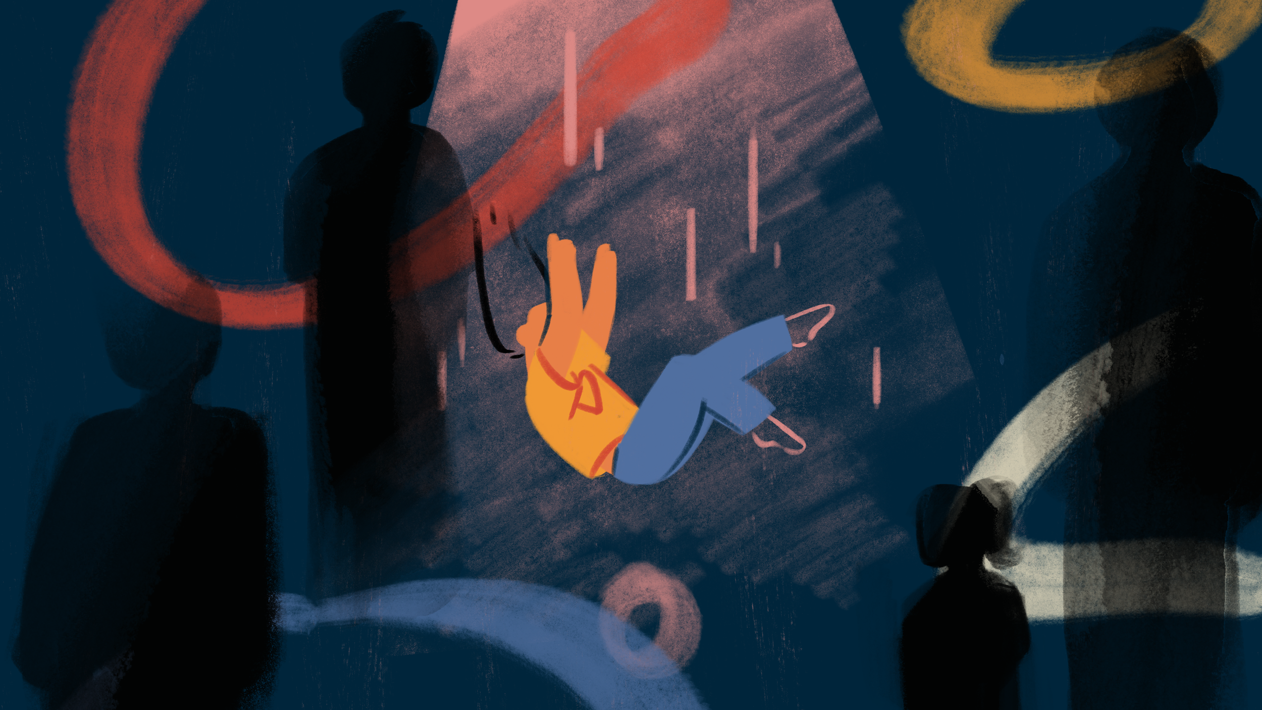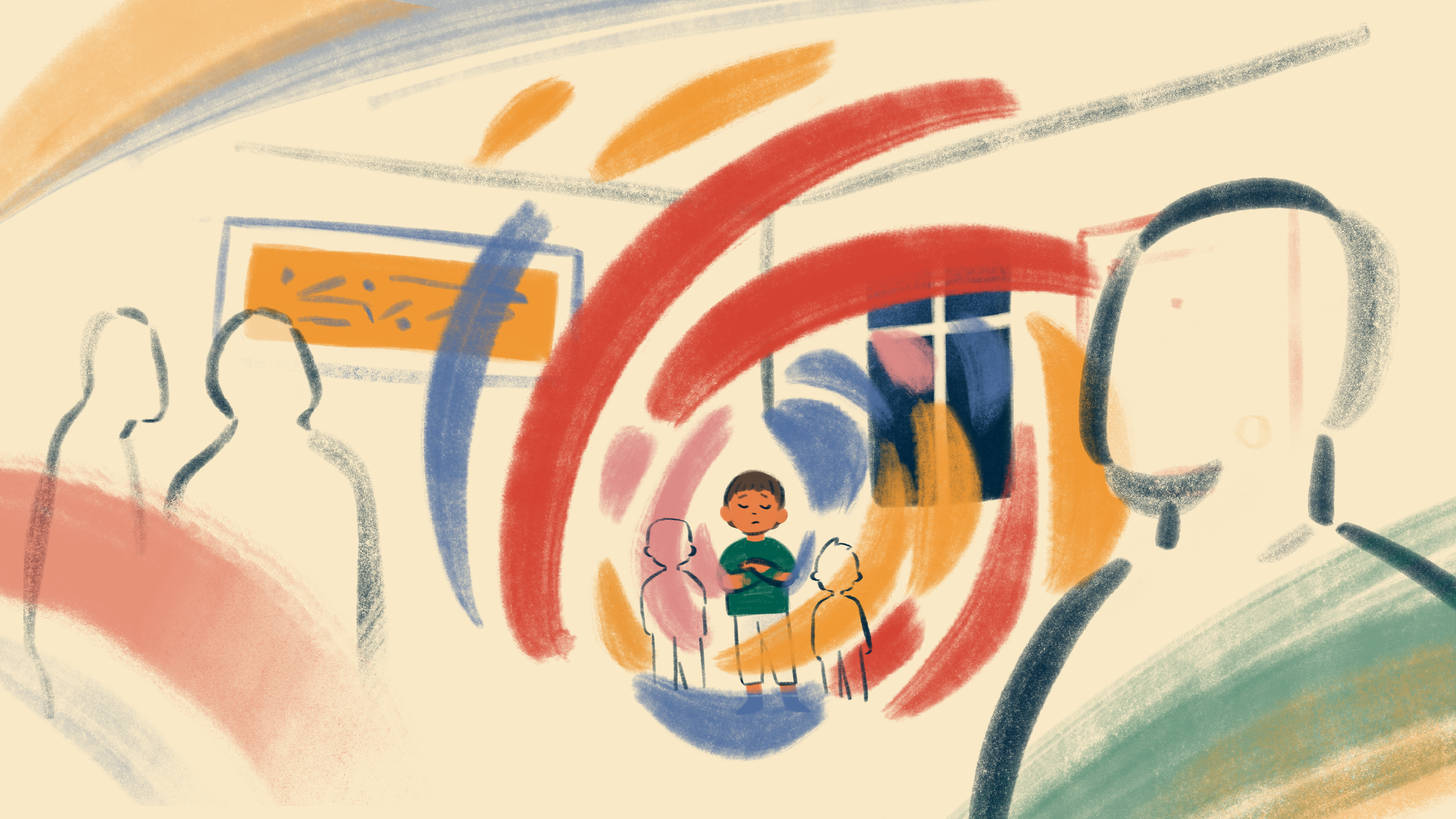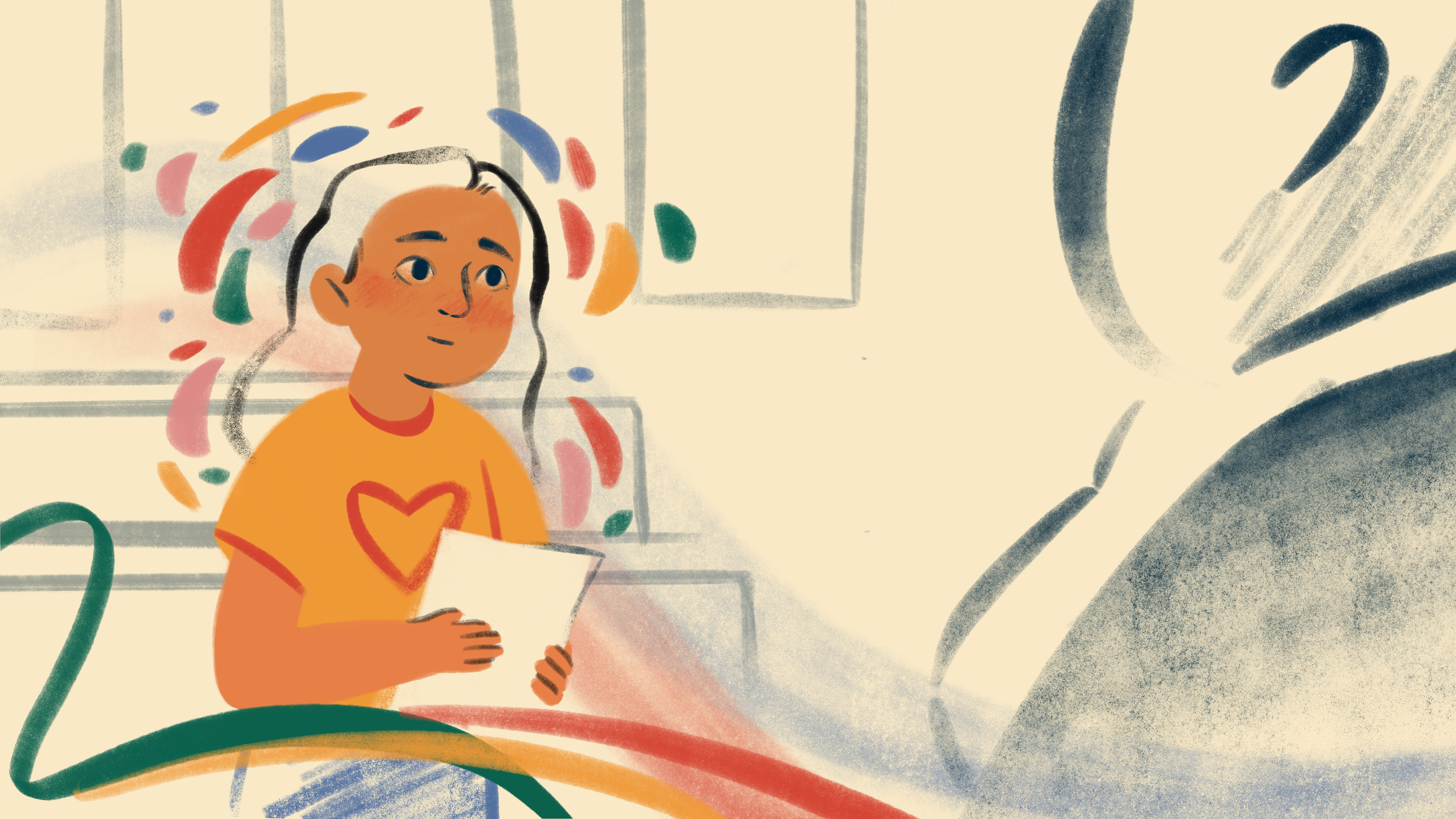 Illustrating the sensitive nature of these personal stories was a challenge. We were working to a very tight timeline of three days, and didn’t have the budget to rig characters, so I decided to focus only fully rendering the children at the centre of the story. Adults and other people are silhouetted or outlined to capture the loose feeling of recalling a memory from childhood, and colourful dynamic brush strokes are incorporated throughout to reflect the intense emotions surrounding the situation.